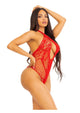 Leg Avenue Long Sleeve Pothole Suspender Top Bodysuit with Thong Back and O-Ring Detail
