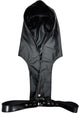 This hog-tie is designed around a padded leather collar. There are multiple D-rings down the back strap for attaching wrist cuffs and ankle cuffs in various positions. This hog-tie is fully adjustable and comes together with removable padded leather wrist and ankle restraints.