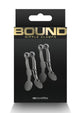 Includes 2 fully adjustable multi-use clamps. Unique tweezer-style design with fully adjustable sliding ring. Soft, comfortable pads. Heavy-duty metal. Non-tarnishing, nickel-free. Added weight to increase stimulation.