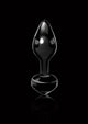 Perfect for anal play, this luxurious glass plug features a tapered tip to ease insertion, bulbs that provide extra sensation, and a narrow neck that allows your muscles to wrap around and hold it in. Cleverly curved for P-spot stimulation, this plug guarantees the most explosive orgasms you've ever imagined! The ring at the base ensures it won't slip too far inside, and offers safe and easy removal.