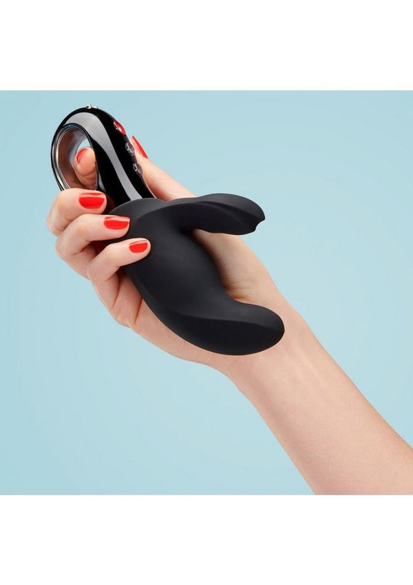 MISS BI is the dual action vibe youb ve been dreaming of, with a shape designed for targeted G-spot massage and deep, powerful vibration against the clit. Designed to be flexible and developed over time for the best fit, both the thick shaft and the clitoral extension can be bent and flexed for maximum comfort and adventurous new positions.
